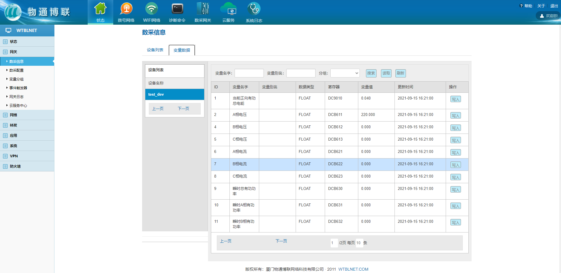 ☆ 网关---数采配置---添加设备---添加变量---重启采集程序并生效新的配置。