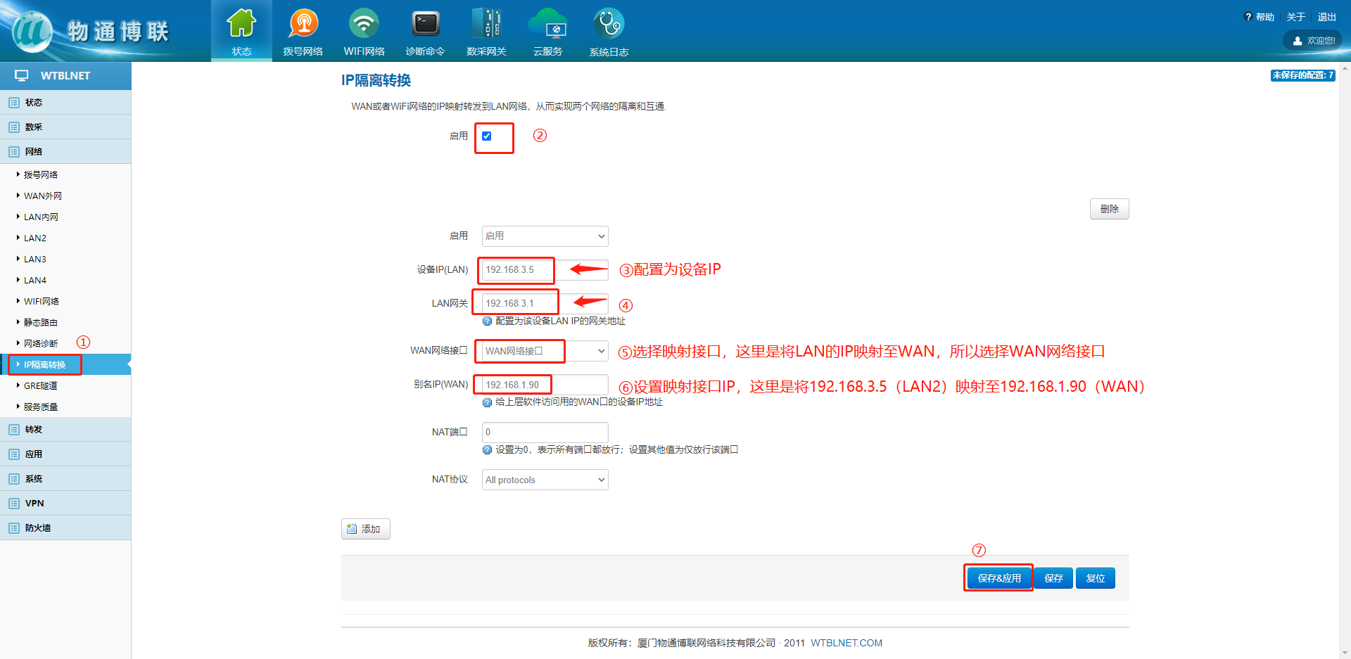 对此,威九国际推出具备IP隔离和NAT转换功能的网段隔离器,适用于生产网络对 PLC、HMI、CNC、DCS、MES等网络通讯和数据采集,兼有跨网段隔离和IP转换的功能。比如车间多个设备,如果有不同网段的IP地址,则可以统一成同一网段的IP地址,进行设备(PLC、CNC)的在线编程、数据采集、远程管理等各种跨网段访问。
