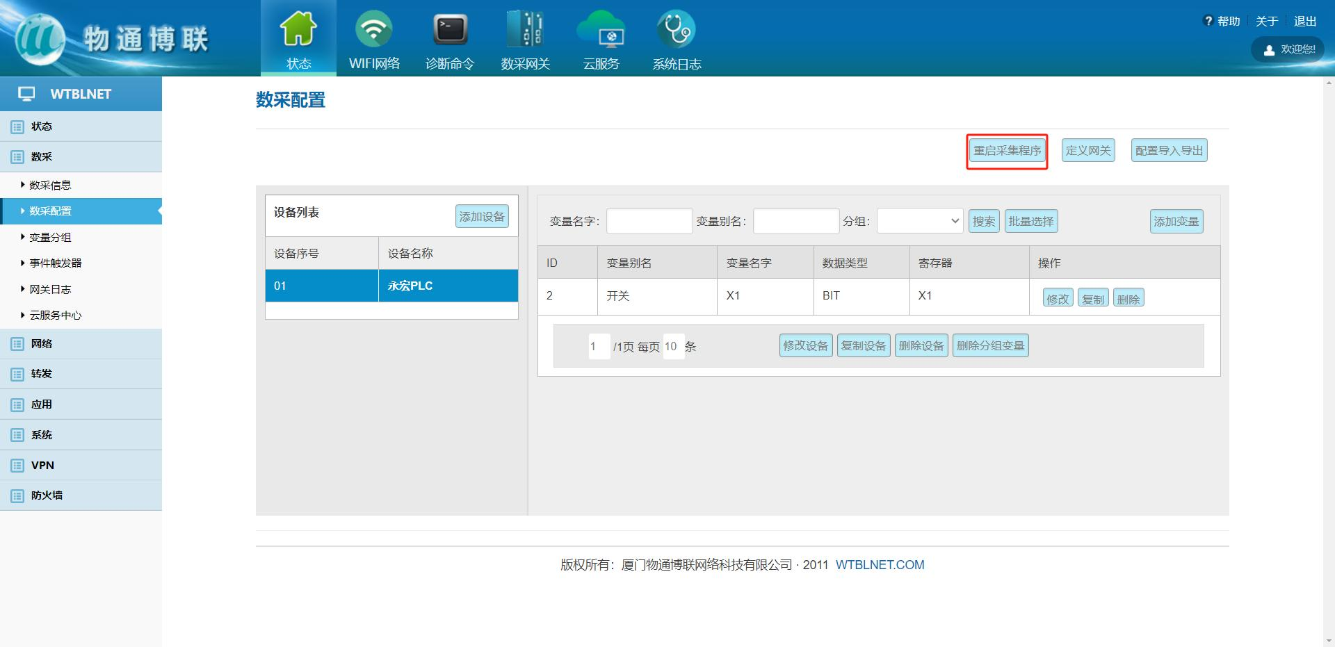 新增/修改配置后,需要点击重启采集程序,使新的配置生效。