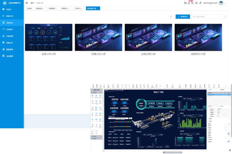 全新拖拽式大屏编辑器,无需编程即可快速构建数据驾驶舱。支持自定义组件上传,满足企业对数据可视化的多样化需求,实时展示设备运行状态、生产效能等关键指标。