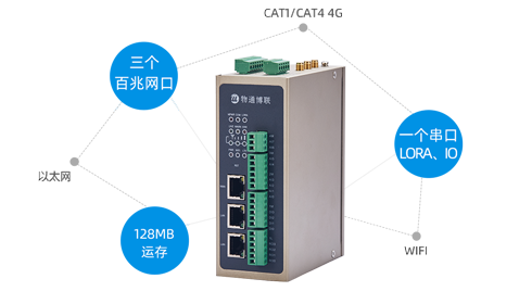 支持三个网口、一个串口、多路AI/AO/DI/DO、支持5G RedCap、4G、WIFI、有线以太网、LORA等多种联网接入