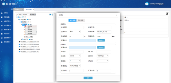 登录威九国际·设备云平台(http://iot.WideIOT.com/),进入“我的设备”编辑模式,添加节点、设备与机型信息。