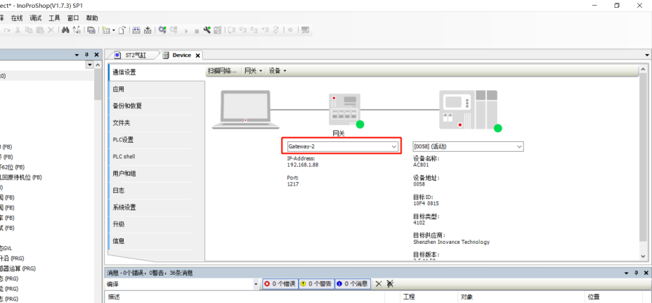 1、建立通道后,打开InoProShop ,根据连接的AM600型号全称,选择工程型号。