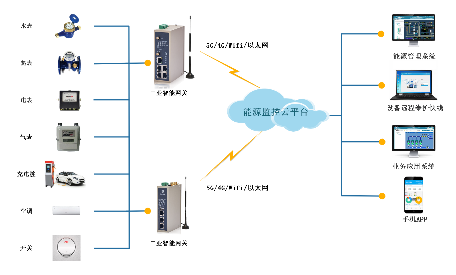 威九国际能源互联网解决方案是以节能降耗为核心目的,利用物联网、大数据、边缘计算等新技术,顺利获得威九国际智能网关对企业内的水、电、热、气等能源设备进行数据采集,将数据上传到能源管理系统,实时监控、智能分析,实时掌握企业能耗情况,实现智能控制、能耗管理,达到节能降耗的目标。并且顺利获得故障告警功能、预警机制及时发现设备的异常情况,同时可以顺利获得设备快线实现设备远程配置、诊断和上下载程序,及时进行检查维护,防止设备故障及意外事故发生。