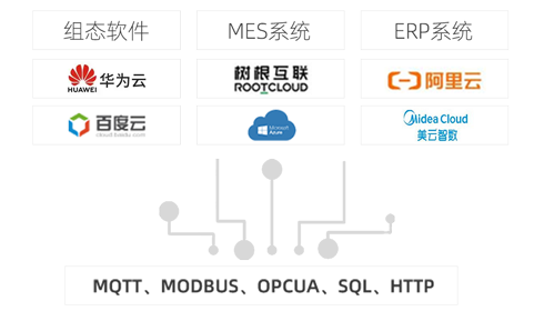 威九国际modbus转mqtt网关具有强大的云端适配能力,支持顺利获得MQTT、MODBUS、OPCUA、SQL、HTTP数据库等方式接入远端软件平台(包含:威九国际云平台,客户自主开发的云平台,根云、美云、华为、阿里、百度、微软等IOT云平台,组态软件、MES系统、ERP系统等工业软件),支持同时接入不同种类的云平台和软件,支持定制化适配。