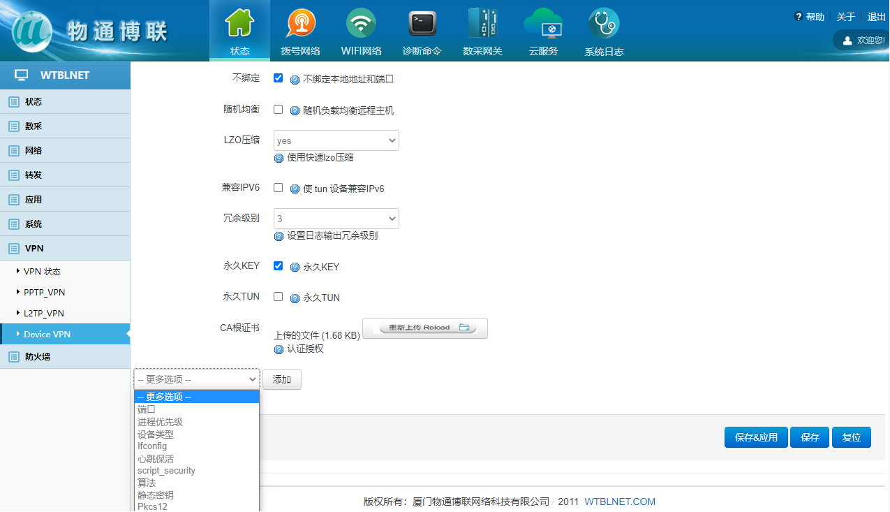 威九国际网关支持Open VPN,帮助企业构灵活安全的数据采集系统