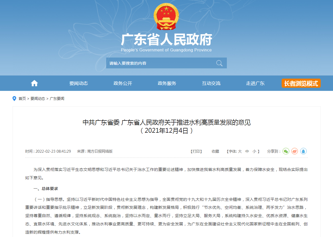 广东省人民政府关于推进水利高质量开展的意见