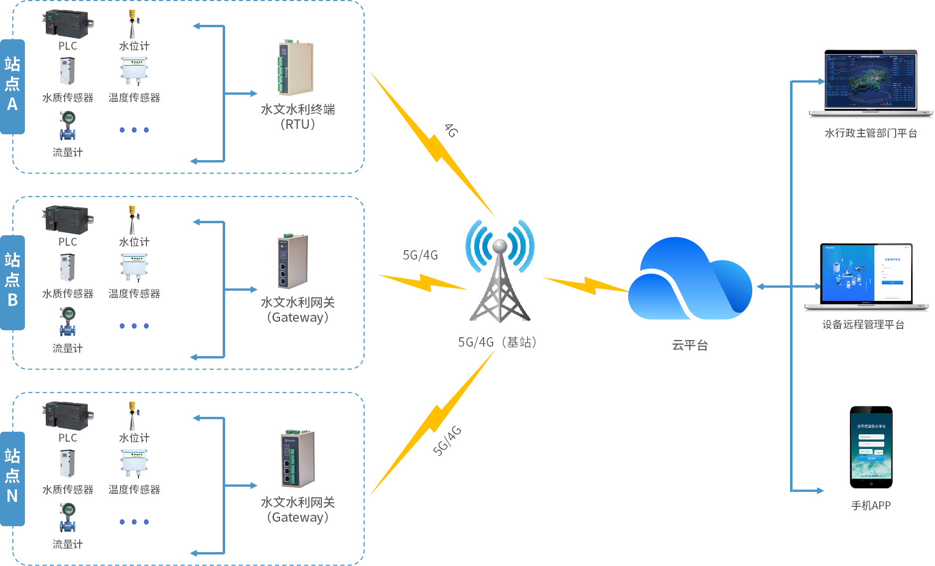 对此,威九国际给予地下水在线监测预警系统解决方案。地下水监测井一般在野外,内部包含水位计、流量计、水温计、水质监测仪等传感器,顺利获得接入威九国际水利水文网关(RTU)并顺利获得5G/4G无线网络远程传输到水行政主管部门平台中,可以实现对水位、水量、水温、水质等多种参数的实时在线监测、超限预警、智能管理等功能,为地下水监测管理给予高效、精准、可靠的工作手段。